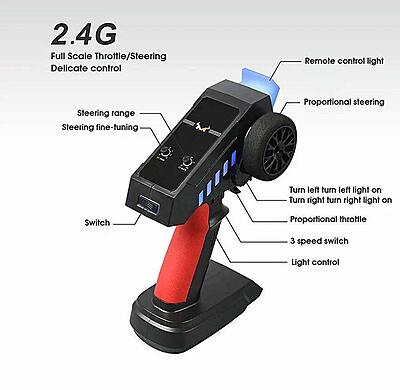- RC System: 6-Channel 2.4GHz Fully Proportional Pistol Grip