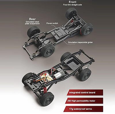 - Waterproof 17g Steering Servo: Ensures precise handling and durability in damp or muddy conditions.